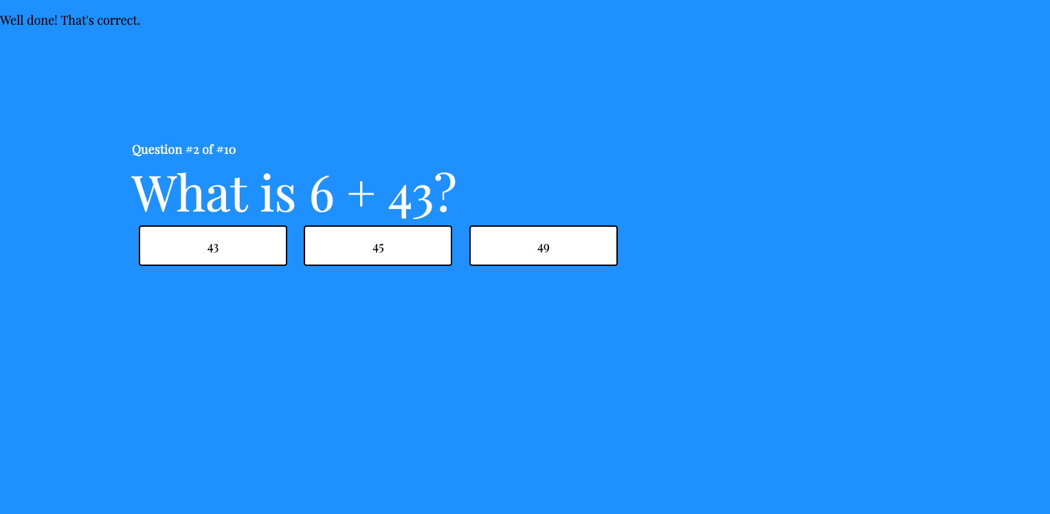 PHP Quiz AppA quiz app with randomly generated addition questions.TechnologiesHTMLCSSPHPLive DemoGitHub Repo