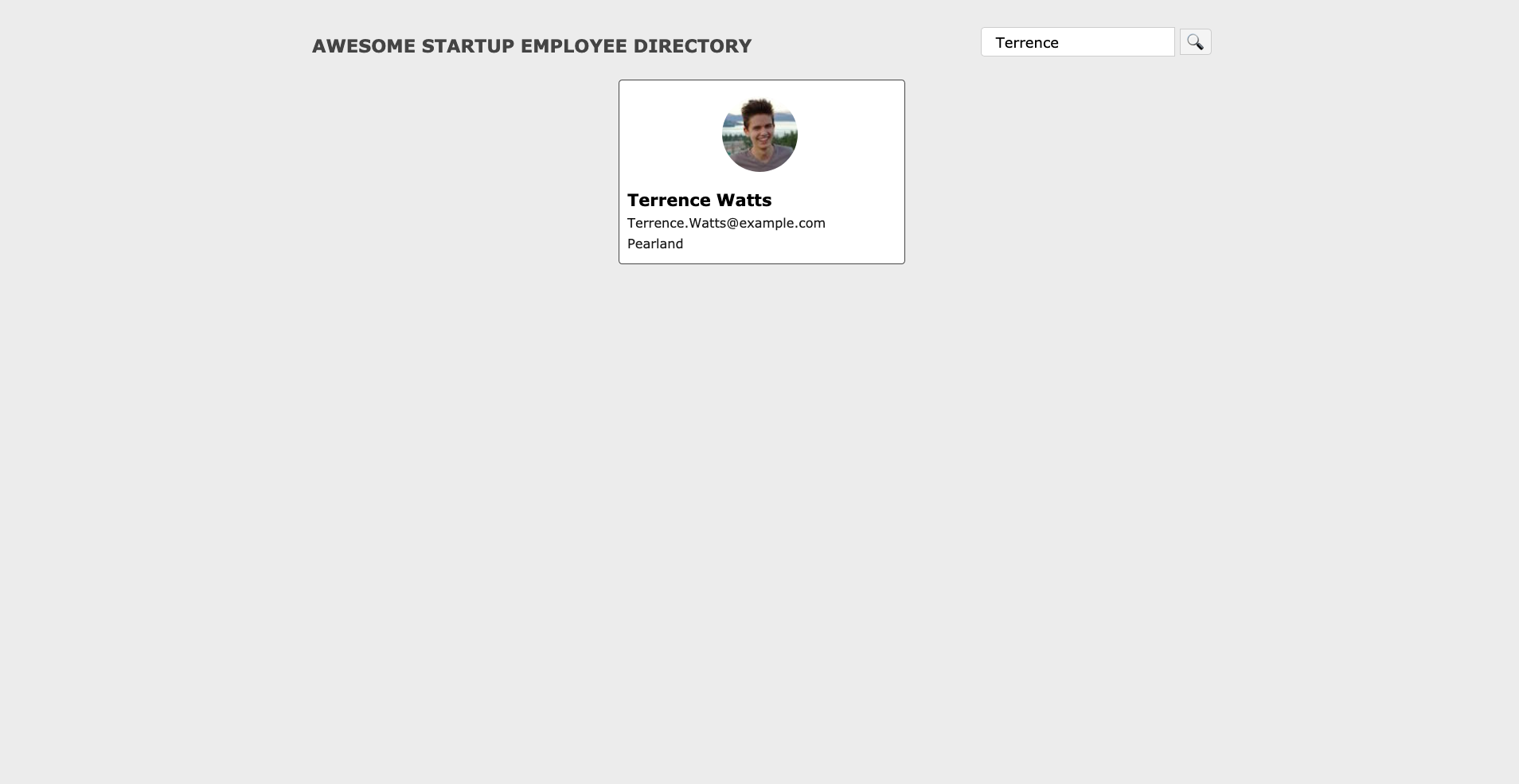 Learn More →The employee directory of a fictional company that consists of employees generated from Random User Generator. There is also a search functionality.
