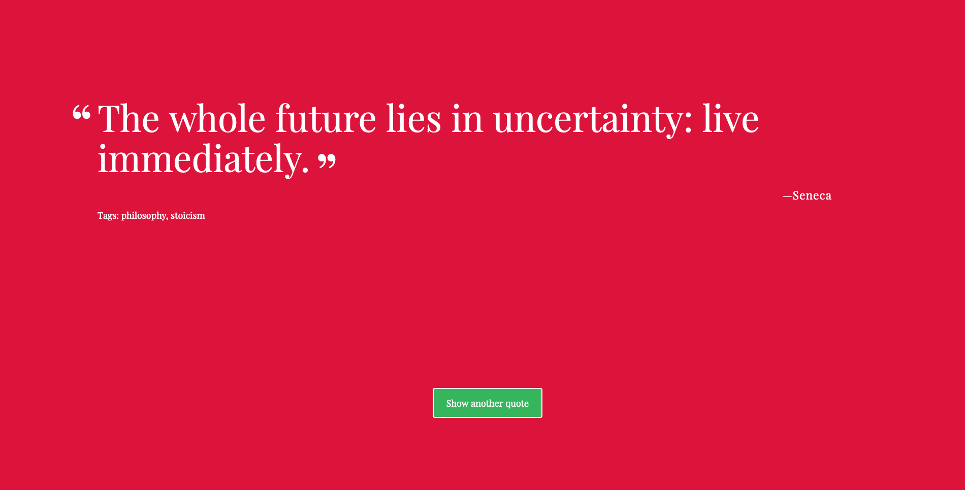 PHP Random Quote GeneratorGenerates random quotes while changing background colour.TechnologiesHTMLCSSPHPLive DemoGitHub Repo
