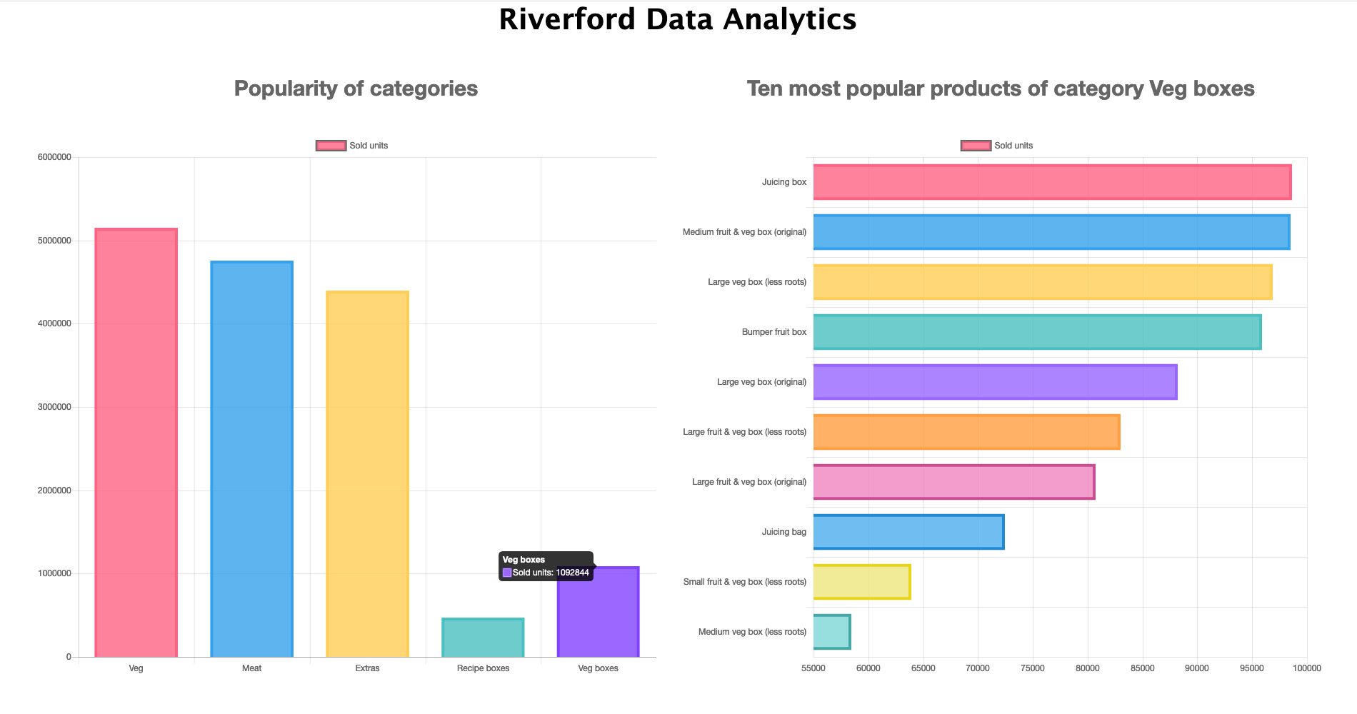 Riverford Data VisualisationData visulation of sold products of Riverford FarmTechnologiesHTMLCSSJavascriptChart.jsLive DemoGitHub Repo
